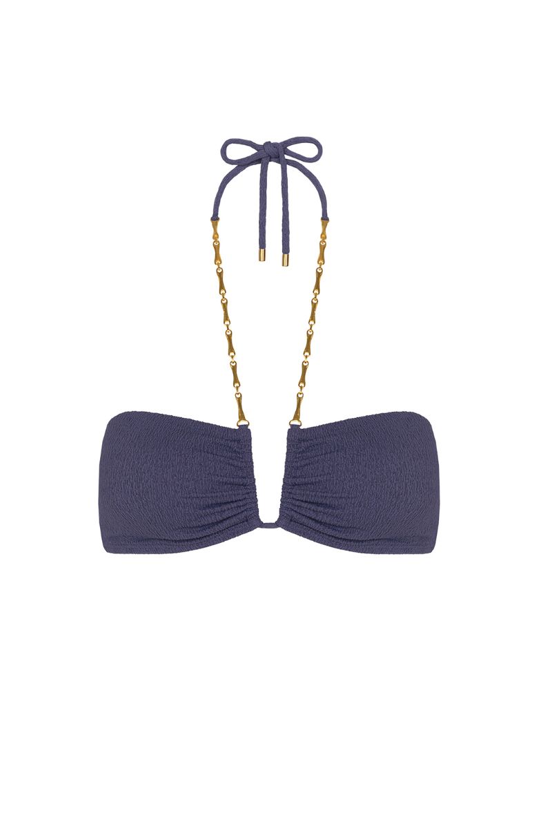 The ViX Bell Top seamlessly blends the sleekness of a bandeau with the elegance of a halter neck. Featuring the Bell detail with gold-plated bars at front, it dips between the bust for a flattering shape and closes with a magnetic clasp at the back.