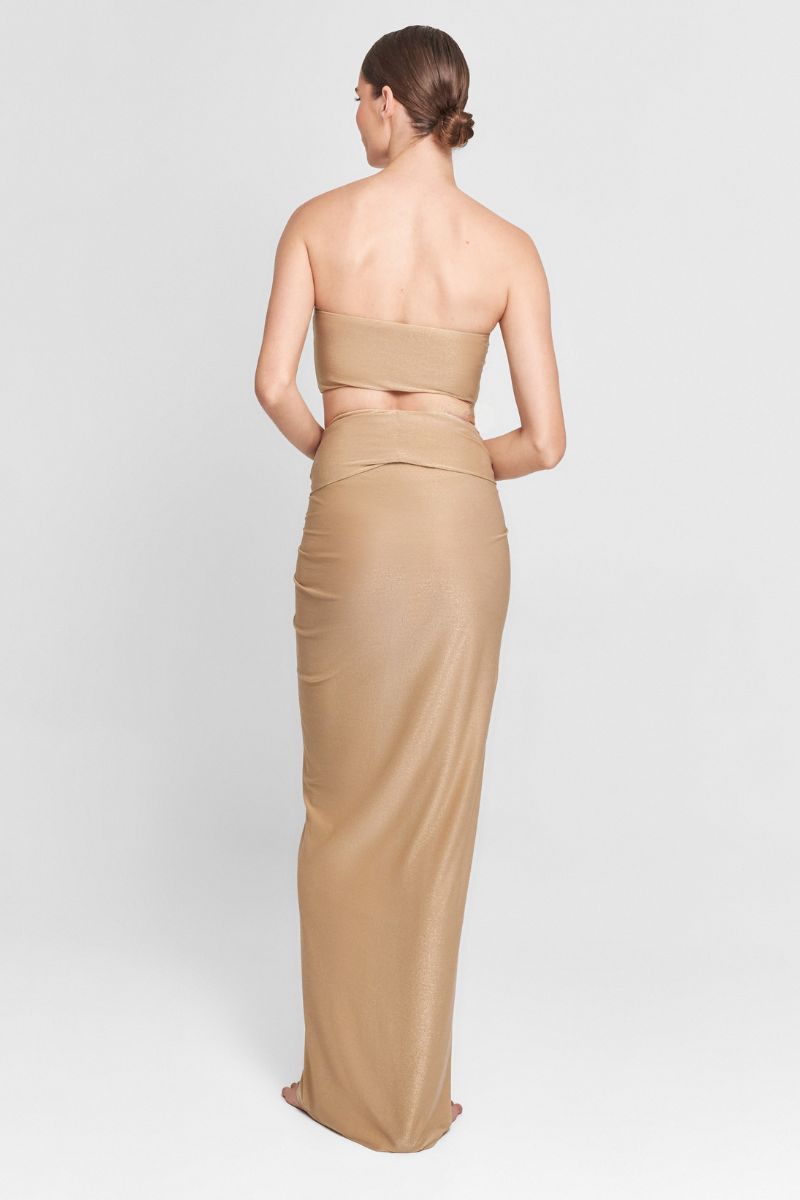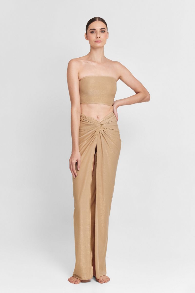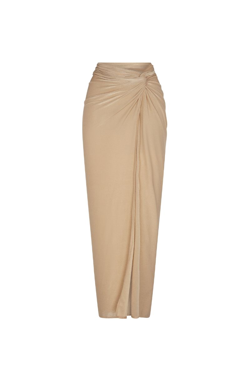 Ruched skirt featuring a draped effect and a side slit for an elegant, flattering fit. Crafted from exclusive subtle shimmer Italian fabric, made in Peru.