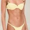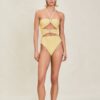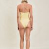 The Lemondrop is a moderate coverage full-piece, with removable pads and custom bead detail at the front waist and bust. Moderate back coverage and can be worn with our Lemondrop Skirt.