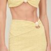 The Noah Top is a strapless bandeau with an adjustable tie back, removable pads and bead detail at the center-front. Pairs back with the Noah Bottom and Eve Skirt.