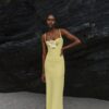 The Nora dress features a fluid silhouette with a minimalist essence. Its long, lightweight design with thin straps and a deep neckline invites you to layer it with different tops, adapting effortlessly to various occasions.
