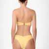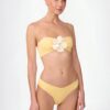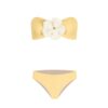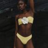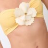 The top is a fresh and elegant piece, perfect for sunny days. Its bandeau shape is enhanced by a 3D flower that highlights the central ruching, adding texture and a distinctive touch.