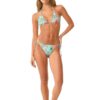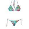 The Solana Tie Side Bottom features a bright blue base with a flirty tropical floral print and delicate hand-embroidered beading. Finished with playful ripple lettuce-edge trim, adjustable side ties, and subtle ruching in the back for a flattering fit, this low-rise bottom is made to make a statement on your next getaway.